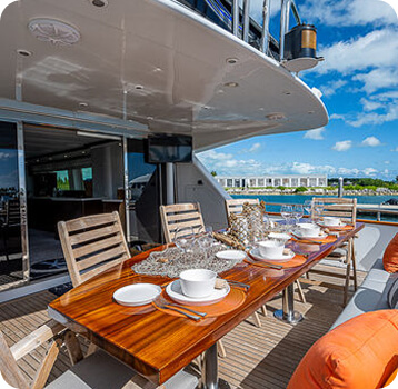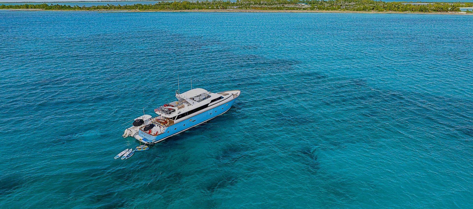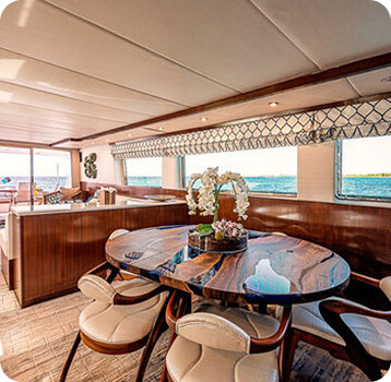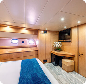 The Azure exudes elegance and style with its modern interior and comfortable accommodations. This vessel boasts a Master Cabin, VIP Cabin and a Twin Cabin, all complete with en suite bathrooms for the ultimate convenience and privacy.