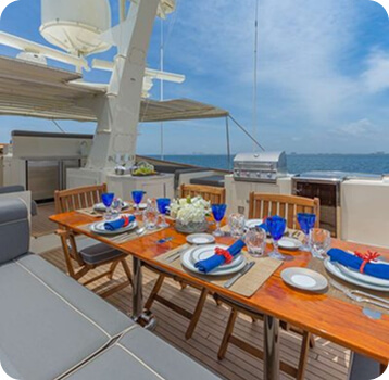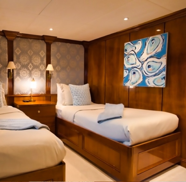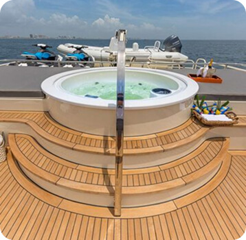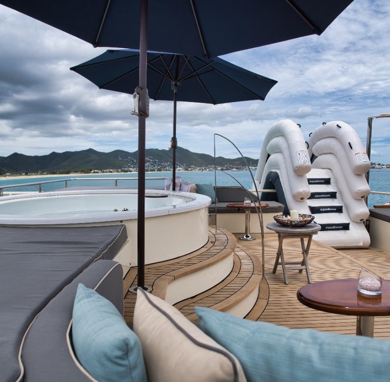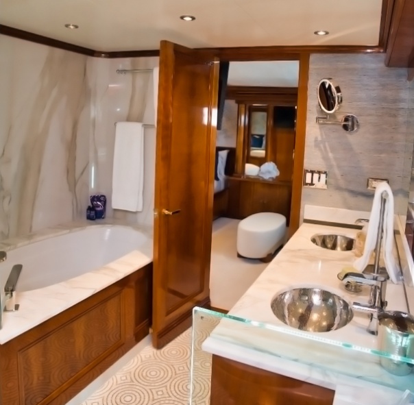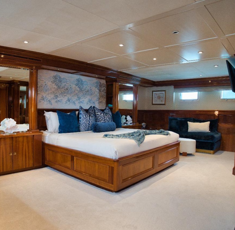 Yacht BLUE is a distinctly sophisticated superyacht promising unforgettable luxury yacht charters, offers guest accommodation for up to 8 guests in 4 suites comprising a master suite, one VIP cabin, one double cabin and one twin cabin. There are 5 beds in total, including 1 king, 2 queen and 2 singles. She is also capable of carrying up to 6 crew onboard to ensure a relaxed luxury yacht charter experience. Whatever your activities on your charter, you’ll find some impressive features are seamlessly integrated to help you including air conditioning to keep your comfortable throughout your charter.